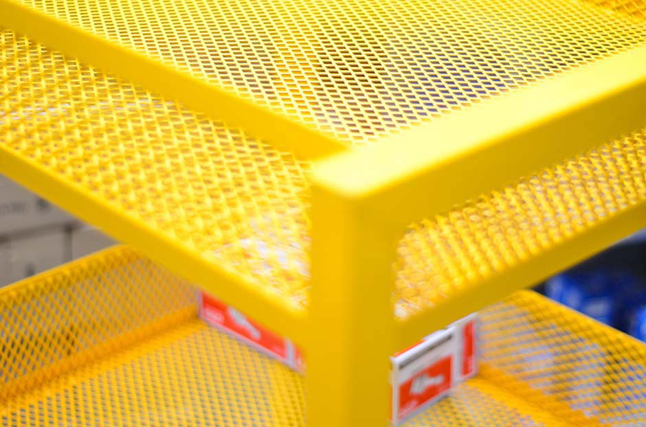 La manera más fácil de alertar al personal sobre cargas potencialmente peligrosa. Para transportar agentes limpiadores, químicos y otros materiales que requieren mayor precaución en su manejo. Cuenta con 4” de profundidad en los entrepaños de acero para controlar los posibles derramamientos. Plataforma de 50 cm de ancho x 70 cm de largo, llantas de caucho de