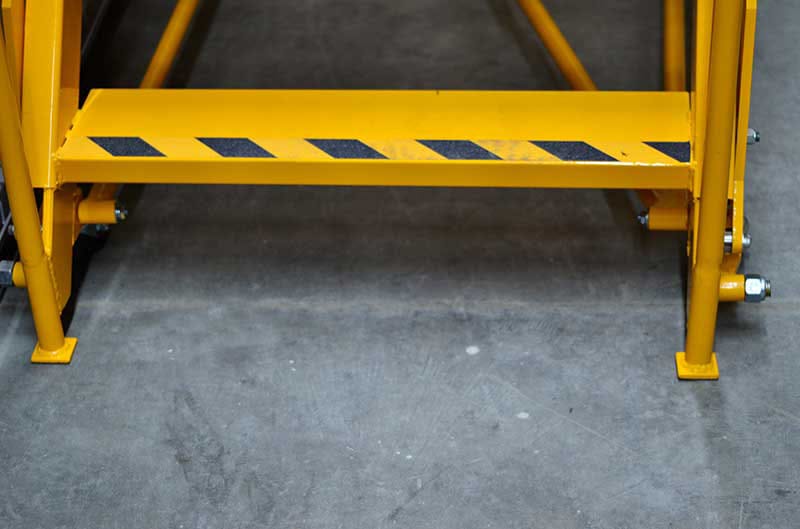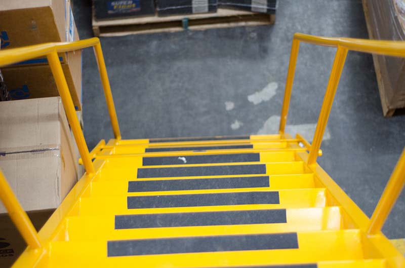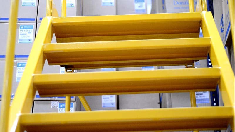 Así mismo son construidas completamente en acero soldado, con pasamanos fijos, peldaños antideslizantes, ángulo de inclinación de 56° y una amplia plataforma superior, que permiten una operación segura para aplicaciones de llenado de estantería en centros de distribución.